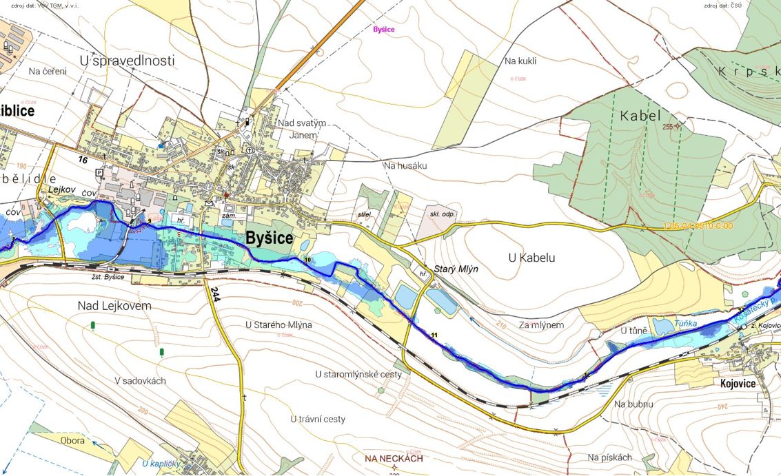 Tímto dokumentem stanovil Krajský úřad Středočeského kraje kulminační průtoky na úrovni Q5, Q20, Q100 i aktivní zónu záplavového území zmíněného vodního toku. Košátecký potok pro obec Byšice představuje reálné povodňové riziko.
